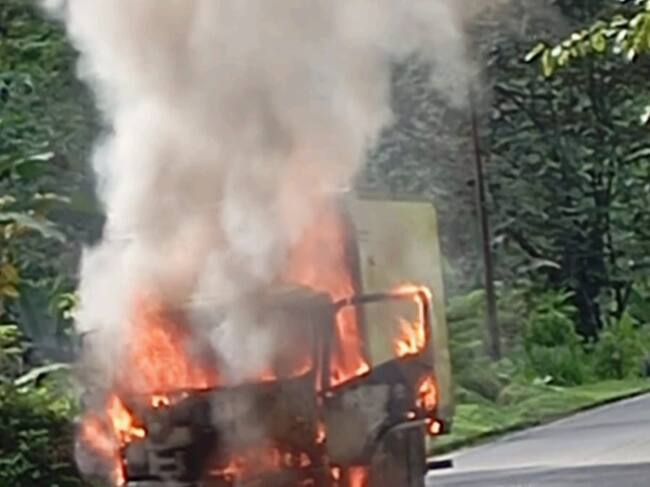 El furgón, que transportaba productos alimenticios, quedó completamente calcinado, generó pérdidas materiales, también incertidumbre sobre la seguridad de quienes transitan a diario por esta importante vía que conecta el Chocó con el Eje Cafetero.