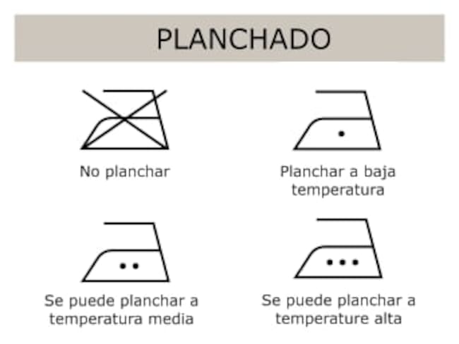 - Plancha: Se puede planchar sin restricciones. Si tiene puntos, estos indican la temperatura adecuada: