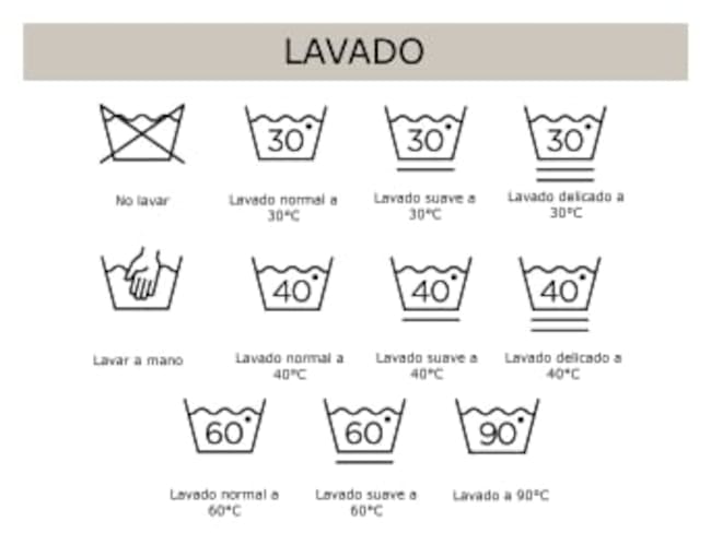 Estas etiquetas, que con frecuencia son omitidas por desconocimiento de los símbolos que contienen, en realidad son muy importantes: se trata de indicaciones para lavar, secar y planchar adecuadamente las prendas con el objetivo de mantenerlas en buen estado y prolongar su vida útil.