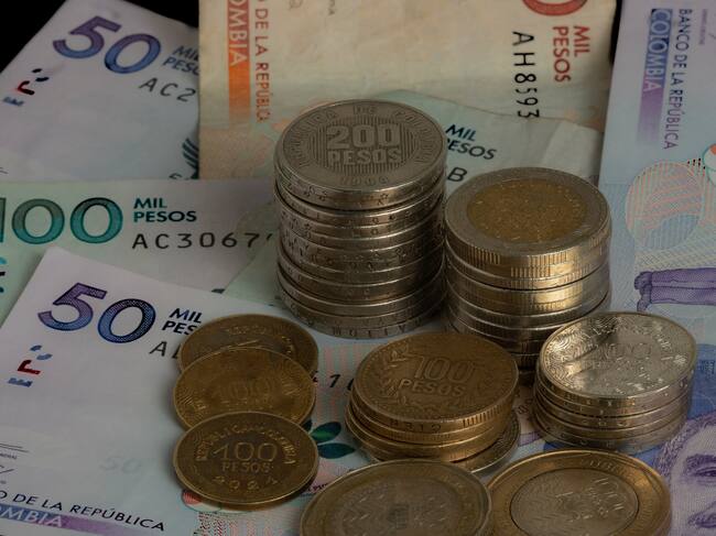 Primer plano de monedas y billetes colombianos. Getty Images / Nelson Hernandez Chitiva