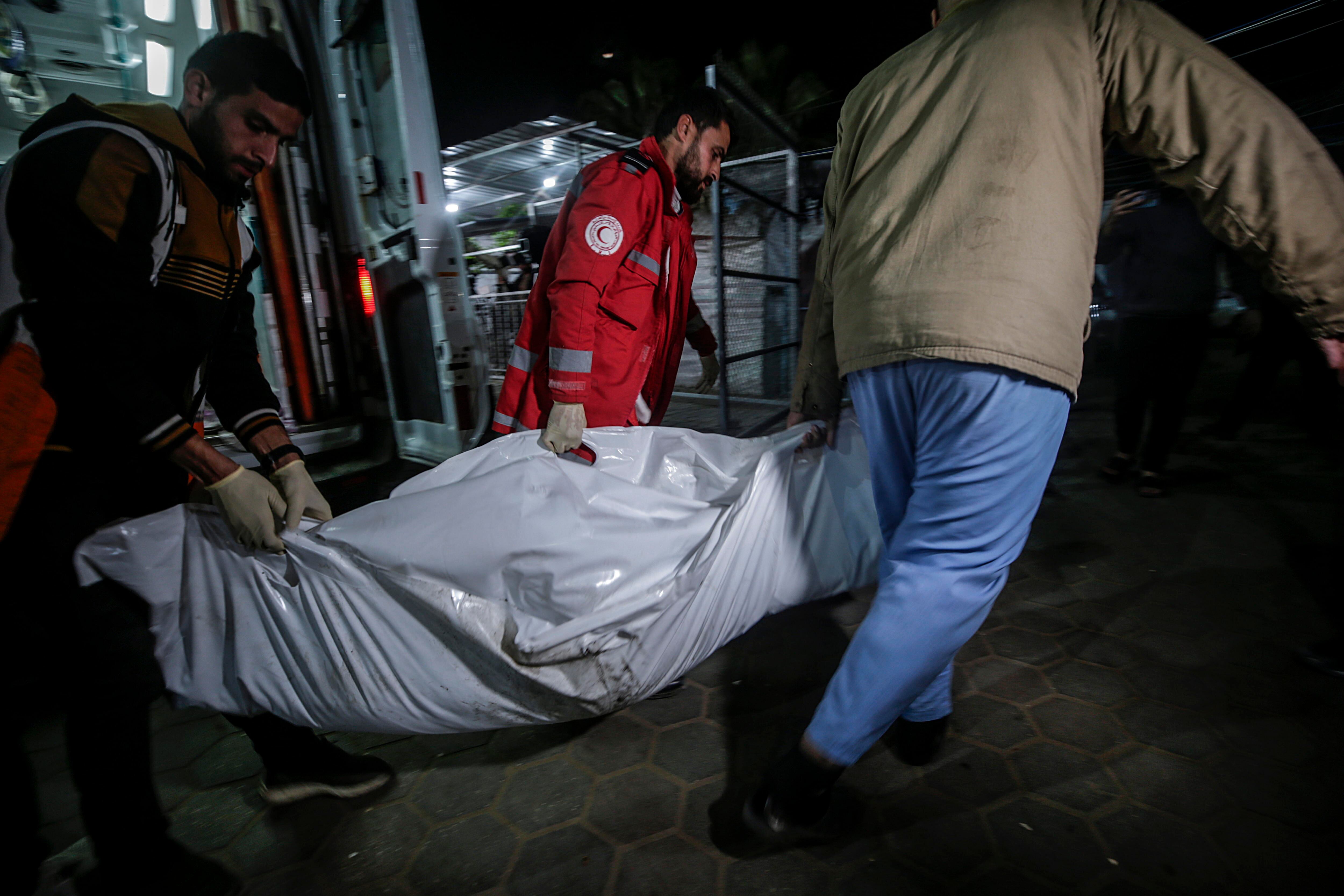 Al hospital Mártires de al Aqsa de Deir al Balah, en el centro de la Franja, fueron trasladados los cuerpos de cinco personas muertas en dos ataques contra sendas casas en el campo de refugiados de Nuseirat.