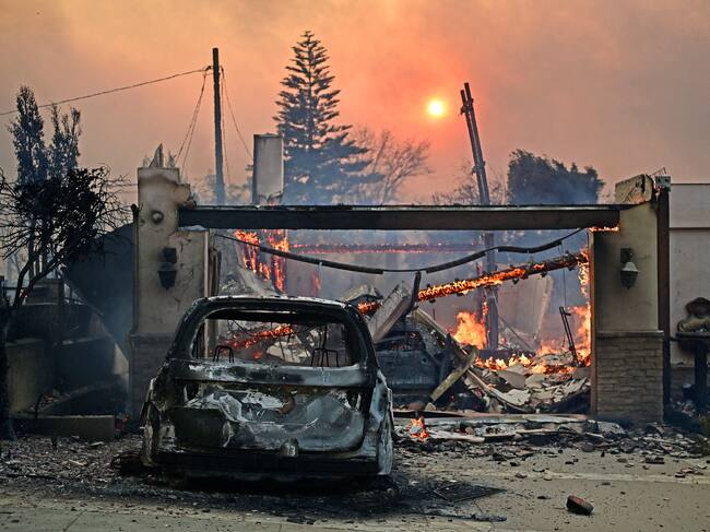 Una casa sigue ardiendo tras el paso del incendio Palisades, en Pacific Palisades, California, el 8 de enero de 2025. AFP / AGUSTIN PAULLIER