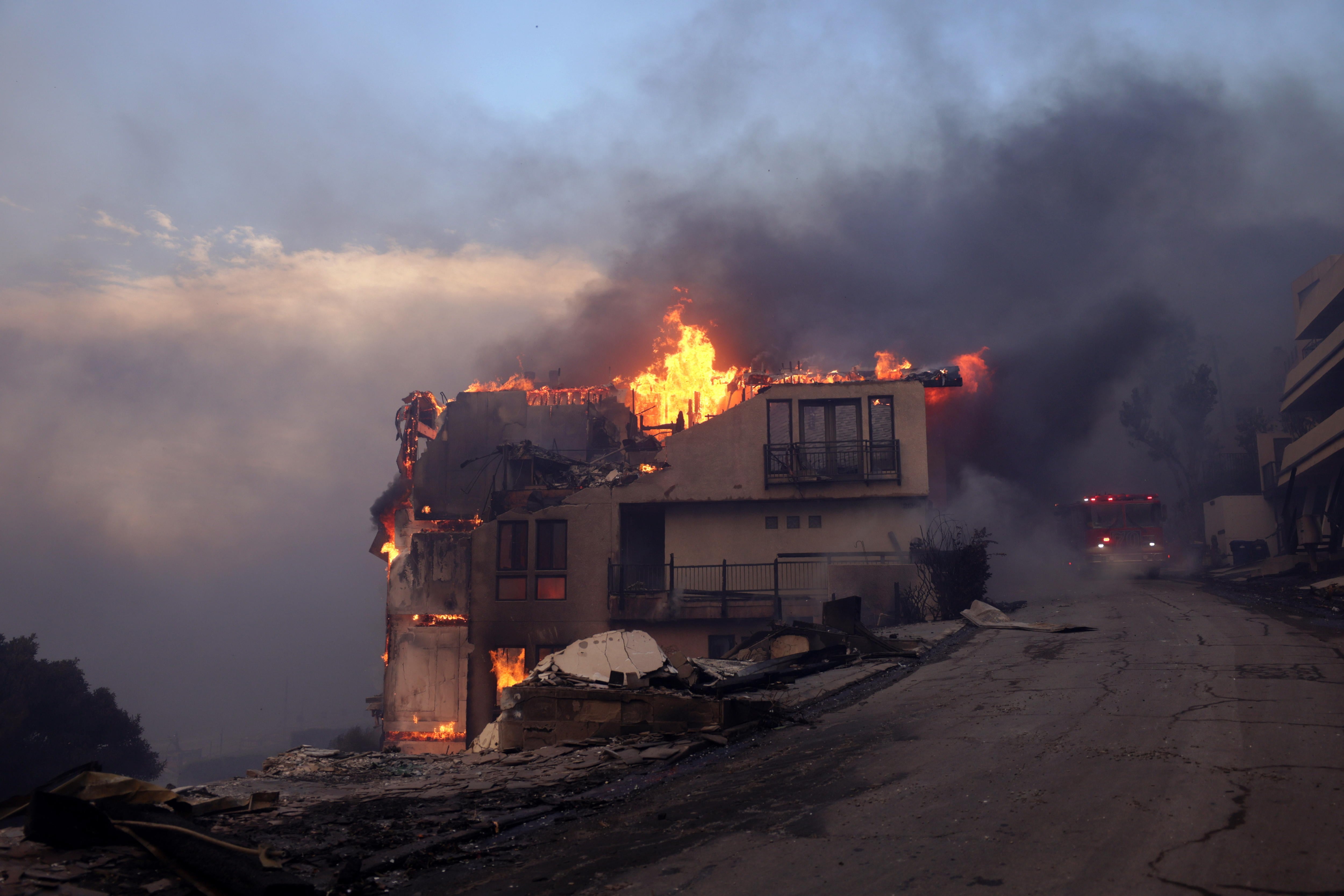 Malibú (Estados Unidos), 08/01/2025.- Una casa arde por el incendio forestal de Palisades. EFE/EPA / ALLISON DINNER