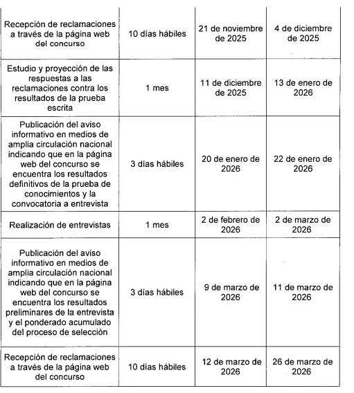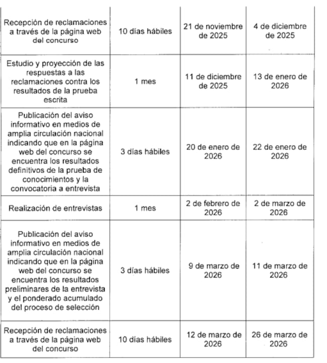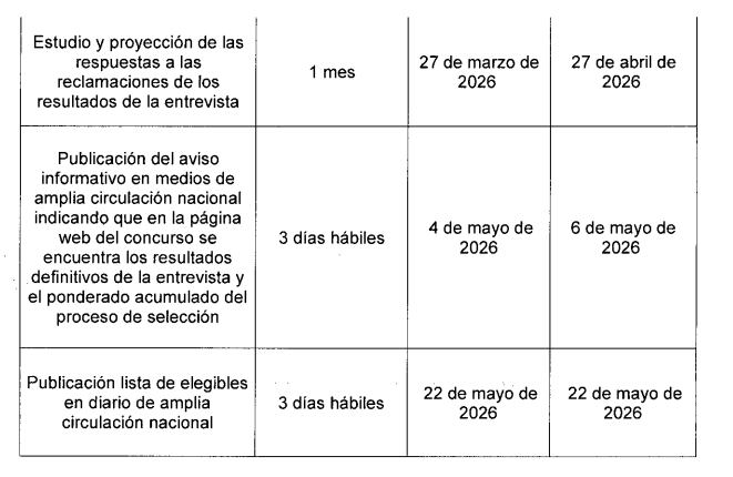 El concurso culminará el 22 de mayo del 2026 con la publicación de la lista de elegibles.