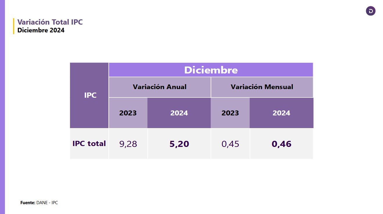 Según el Dane, la inflación total en 2024 estuvo en lo esperado y se ubicó en 5,20%
