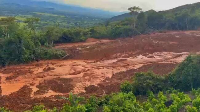 El desprendimiento de una montaña generó una avalancha de 2 kilómetros de largo y 300 metros de ancho. Crédito: Alcaldía de Balboa, Cauca.