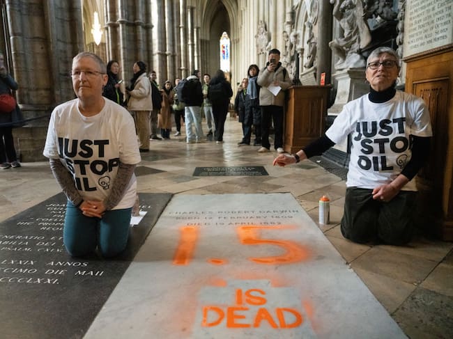 Activistas de Just Stop Oil pintaron la tumba de Charles Darwin en la Abadía de Westminster