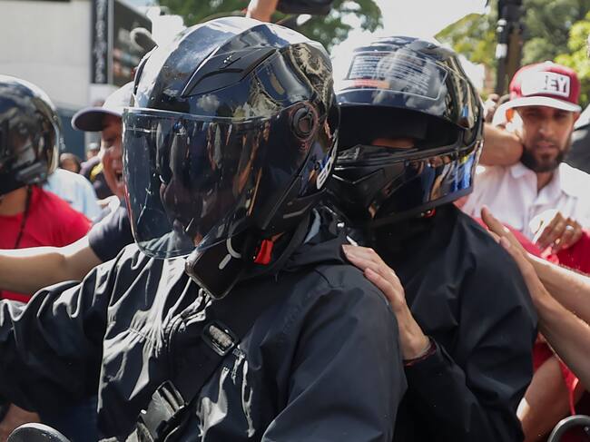 Roalmi Alberto Cabeza conductor de casco negro junto a María Corina Machado (acompañante de casco negro). I Foto: EFE/ Ronald Pena R.. / Ronald Pena R. (EFE)