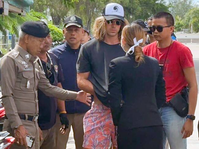 Koh Phangan (Tailandia), 06/08/2023.- Una foto facilitada por la Real Policía Tailandesa muestra al cocinero español Daniel Sancho, condenado por asesinato, escoltado por agentes de la Policía tailandesa. / ROYAL THAI POLICE HANDOUT (EFE)