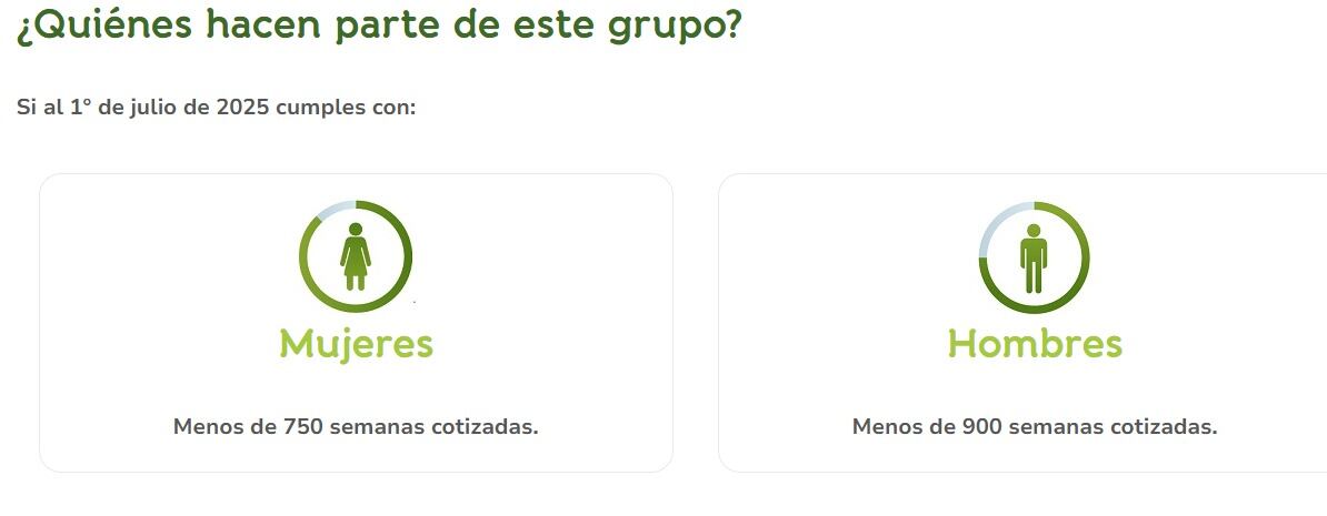 Pues bien, este nuevo sistema explicado anteriormente le aplica únicamente a las mujeres que tengan menos de 750 semanas cotizadas y a los hombres con menos de 900 semanas cotizadas.