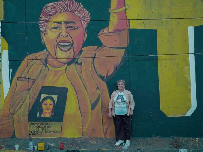 Margarita Restrepo, mujer buscadora en Medellín, parte del mural "Las cuchas tienen razón". (Imagen tomada de X - @andrescamachom_)