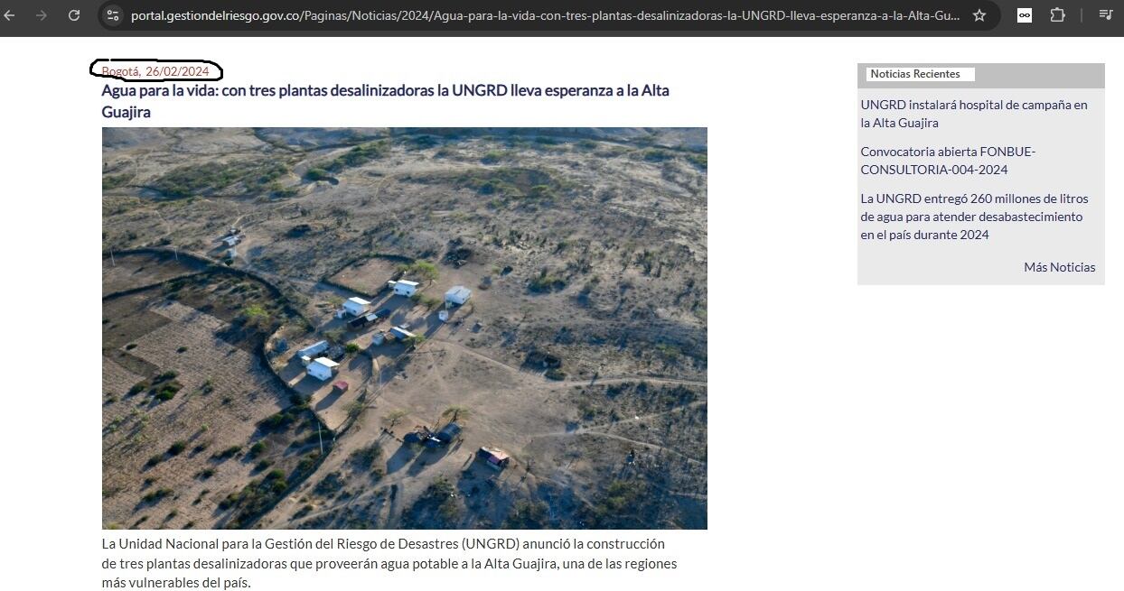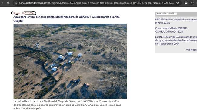 En paralelo, aún se encuentra en la página web de la UNGRD el anuncio de la construcción de estas tres plantas desalinizadoras.
