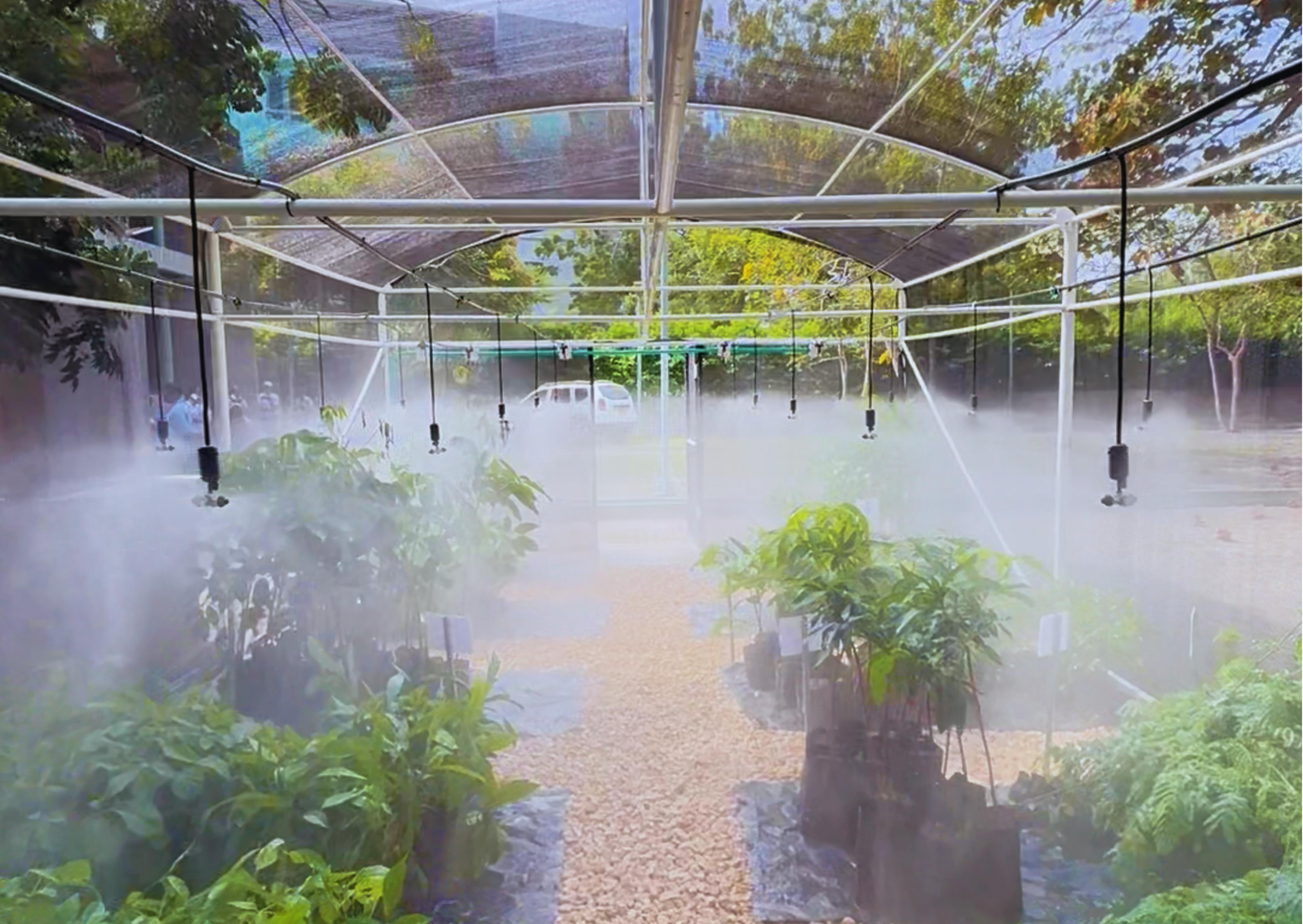 La instalación opera bajo el concepto de umbráculo, una estructura que permite el paso de aire mientras bloquea la radiación solar directa, creando condiciones óptimas para el desarrollo de las especies vegetales. Los paneles solares que alimentan el sistema están ubicados estratégicamente en los techos de la Corporación en la ciudad de Montería.
