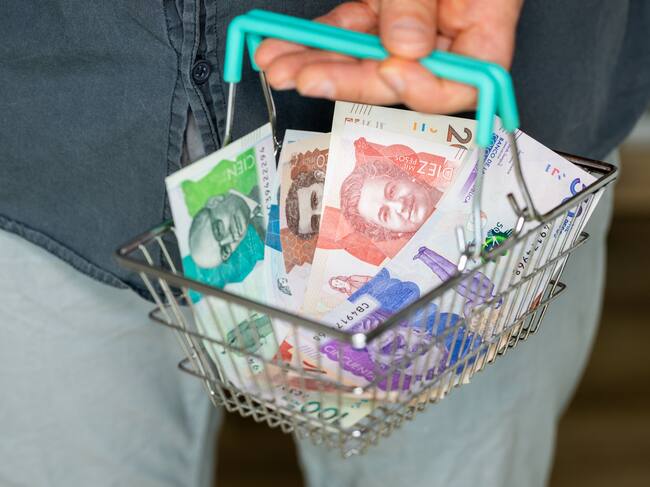Persona sosteniendo una canasta con dinero colombiano. (Foto: Getty Images) / Andrzej Rostek