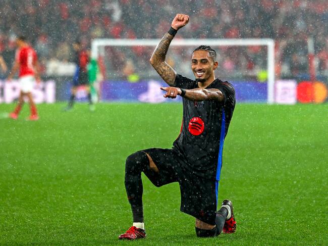 Lisbon (Portugal), 21/01/2025.- Barcelona`s Raphinha celebrates after scoring a goal against Benfica during their UEFA Champions League soccer match held at Luz Stadium in Lisbon, Portugal, 21 January 2025. (Liga de Campeones, Lisboa) EFE/EPA/TIAGO PETINGA / TIAGO PETINGA (EFE)