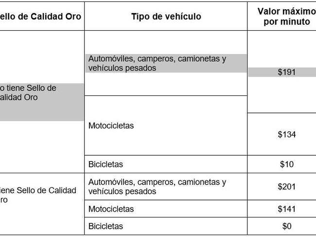 En el proyecto también se establecen las nuevas tarifas para los parqueaderos de la ciudad. Por eso, habrá diferencia en los precios de los parqueaderos que cuenten con Sello de Calidad Oro y aquellos que no lo tengan.
