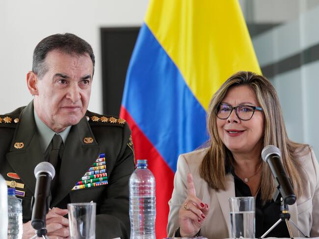 BOGOTÁ (COLOMBIA), 23/01/2025.- La Fiscal general de Colombia, Luz Adriana Camargo (d), habla junto al director de la Policía de Colombia, general William Salamanca, durante una rueda de prensa. / Carlos Ortega (EFE)