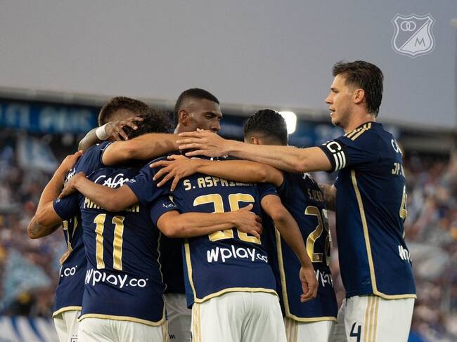 Los jugadores de Millonarios celebran uno de sus goles ante el América / Twitter: @MillosFCoficial.