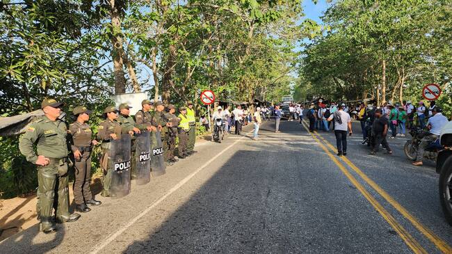 Comunidades indígenas bloquean el paso por el puente San Jorge en Córdoba. Foto: Policía.