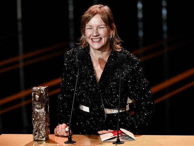 La alemana Sandra Hüller celebra tras ganar el premio a la Mejor Actriz por la película «Anatomy of a Fall» en la 49ª edición de los Premios César de Cine en el recinto Olympia, de París, el 23 de febrero de 2024. AFP vía Getty Images / STEPHANE DE SAKUTIN