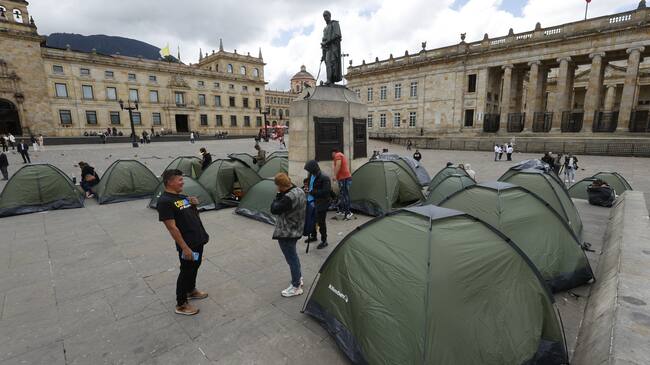 AME4964. BOGOTÁ (COLOMBIA), 29/01/2025.- Líderes campesinos de la región del Catatumbo acampan este miércoles, en la Plaza de Bolívar en Bogotá (Colombia). Al menos 70 líderes del Catatumbo exigieron en Bogotá soluciones al Gobierno colombiano para la violencia guerrillera que azota esa región fronteriza con Venezuela y que deja en algo más de dos semanas entre 60 y 80 muertos y más de 50.000 desplazados. EFE/ Mauricio Dueñas Castañeda / Mauricio Dueñas Castañeda (EFE)
