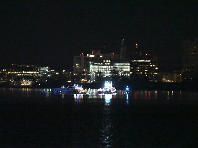 WASHINGTON DC, ESTADOS UNIDOS - 30 DE ENERO: Vista del avión de American Airlines en el agua tras colisionar en pleno vuelo con un helicóptero militar y estrellarse en el río Potomac. Getty Images / Kyle Mazza / Anadolu