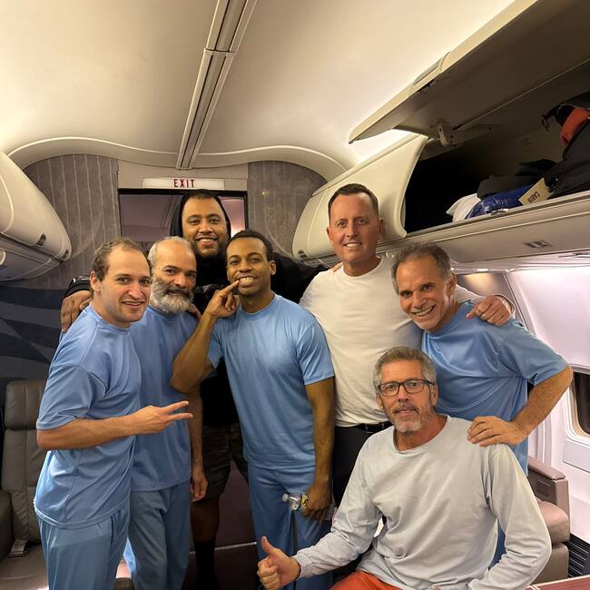 “Nos ponemos en marcha y nos dirigimos a casa con estos seis ciudadanos estadounidenses. Acababan de hablar con Donald Trump y no podían dejar de agradecerle”, escribió Grenell en la red social X, donde compartió una fotografía con los norteamericanos dentro de un avión, sin detalles sobre sus identidades.