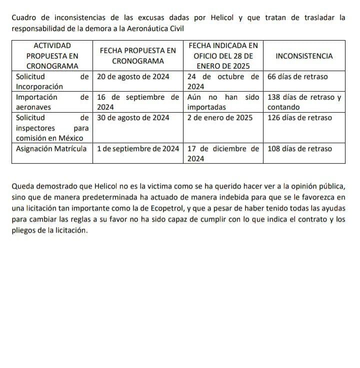La W accedió al cronograma de la Aeronáutica Civil en el que se evidencia el incumplimiento de Helicol.