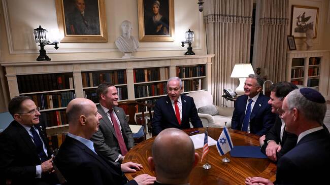 WASHINGTON, 04/02/2025.- El primer ministro israelí, Benjamín Netanyahu (c), se reunía la madrugada de este martes con varios funcionarios estadounidenses. / Oficina del primer ministro israelí (EFE)