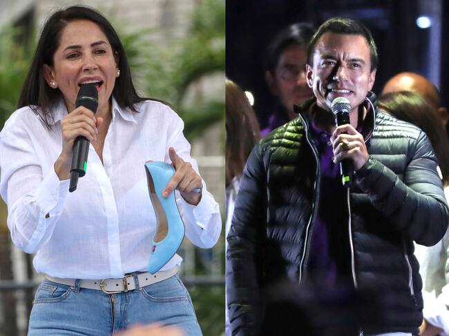 Combo de fotografías donde se observa a la candidata a la Presidencia de Ecuador por el correismo, Luisa González, y al presidente y candidato a la reelección a la presidencia de Ecuador, Daniel Noboa. / Jonathan Miranda / Jose Jacome (EFE)