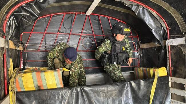 Se trata de 2.012 kilogramos de marihuana que estaban camuflados en bultos dentro de un camión de estacas que se movilizaba por la vereda Mundo Nuevo, en jurisdicción del municipio de Silvia, en el nororiente del Cauca.