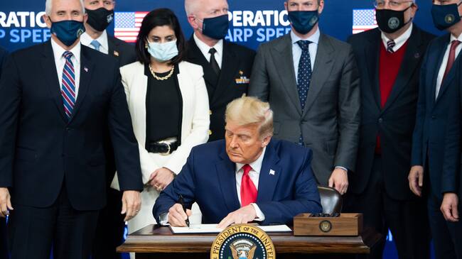Donald Trump firmando orden ejecutiva. FOTO: SAUL LOEB/AFP via Getty Images / SAUL LOEB
