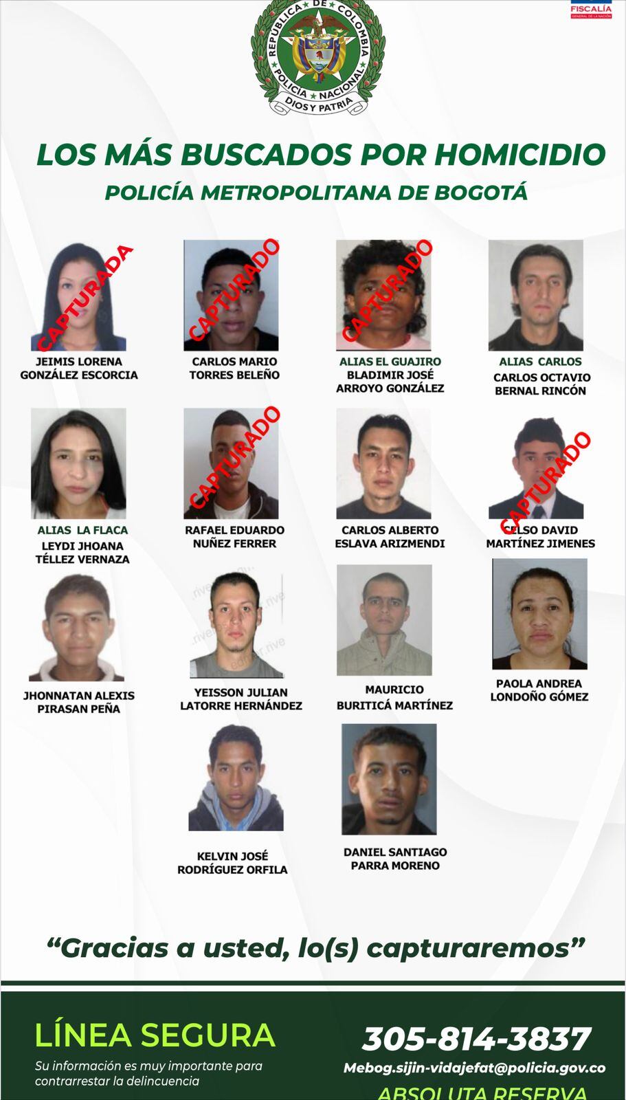 Después de continuas labores de investigación criminal, inteligencia policial y patrullajes constantes, se logró la captura de 35 delincuentes señalados de homicidio en Bogotá.