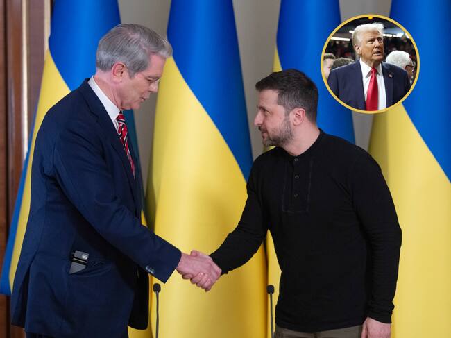 Volodymyr Zelensky y Scott Bessent. FOTO: EFE/EPA/STRINGER (Ucrania, Kiev)