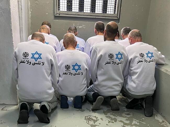 JERUSALÉN, 15/02/2025.- El Servicio de Prisiones israelí vistió este sábado a presos palestinos liberados con chaquetas con la frase "No olvidaremos ni perdonaremos", junto a la estrella de David, confirmó el propio organismo en un mensaje en su canal de WhatsApp. EFE/ Servicio de Prisiones de Israel SOLO USO EDITORIAL/SOLO DISPONIBLE PARA ILUSTRAR LA NOTICIA QUE ACOMPAÑA (CRÉDITO OBLIGATORIO) / Servicio de Prisiones de Israel (EFE)