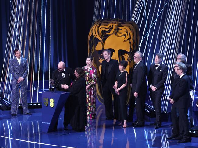 El reparto y el equipo de 'Conclave' aceptan el BAFTA a Mejor Película, en el escenario de los premios, en The Royal Festival Hall el 16 de febrero de 2025 en Londres, Inglaterra. Getty Images / Tristan Fewings/BAFTA