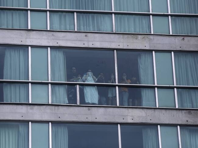 Los migrantes permanecen en el hotel Decápolis de la capital panameña sin posibilidad de salir, pero el ministro de Seguridad Pública, Frank Ábrego, negó que estén privados de libertad, aunque el lugar permanece custodiado por policías con uniforme de camuflaje.