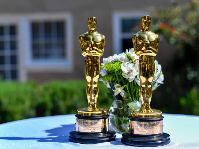 Los Oscars ganados por la directora y guionista francesa Justine Triet y Arthur Harari a Mejor Guion Original por «Anatomía de una caída». (VALERIE MACON/AFP vía Getty Images) / VALERIE MACON