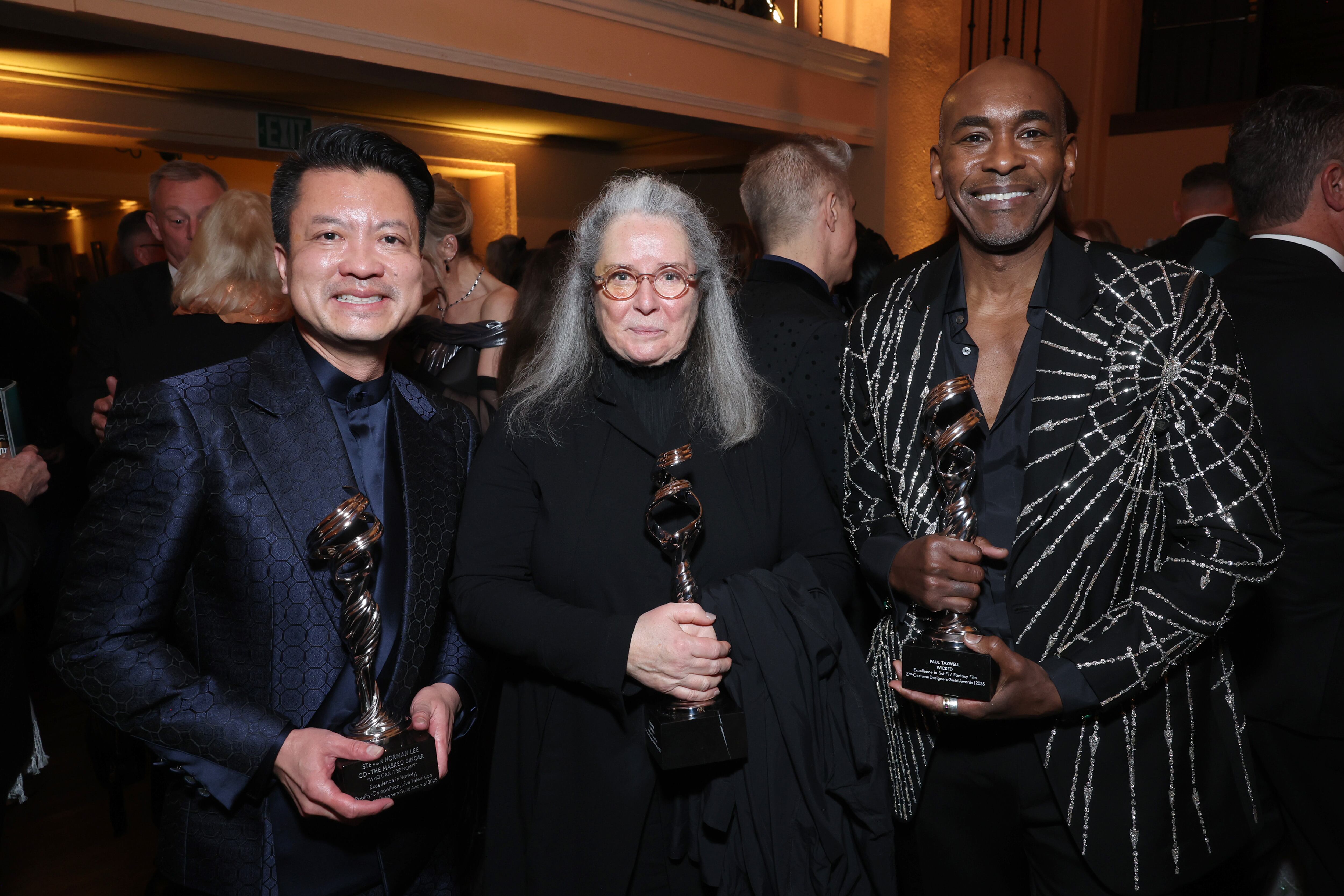 LOS ÁNGELES, CALIFORNIA - 06 DE FEBRERO: Steven Norman Lee, Linda Muir y Paul Tazewell asisten a la fiesta posterior a la 27ª edición de los Costume Designers Guild Awards. Getty Images para CDGA / Randy Shropshire