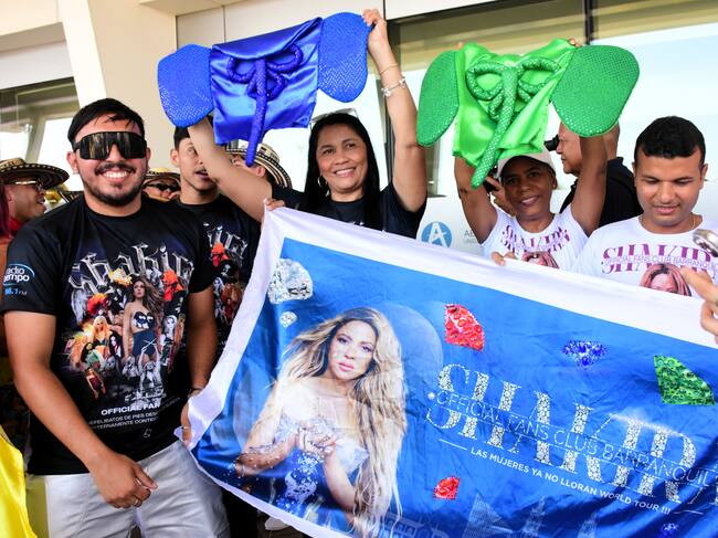 BARRANQUILLA (COLOMBIA), 18/02/2025.- Seguidores de Shakira se reúnen en el aeropuerto Ernesto Cortissoz para recibir a la artista.
