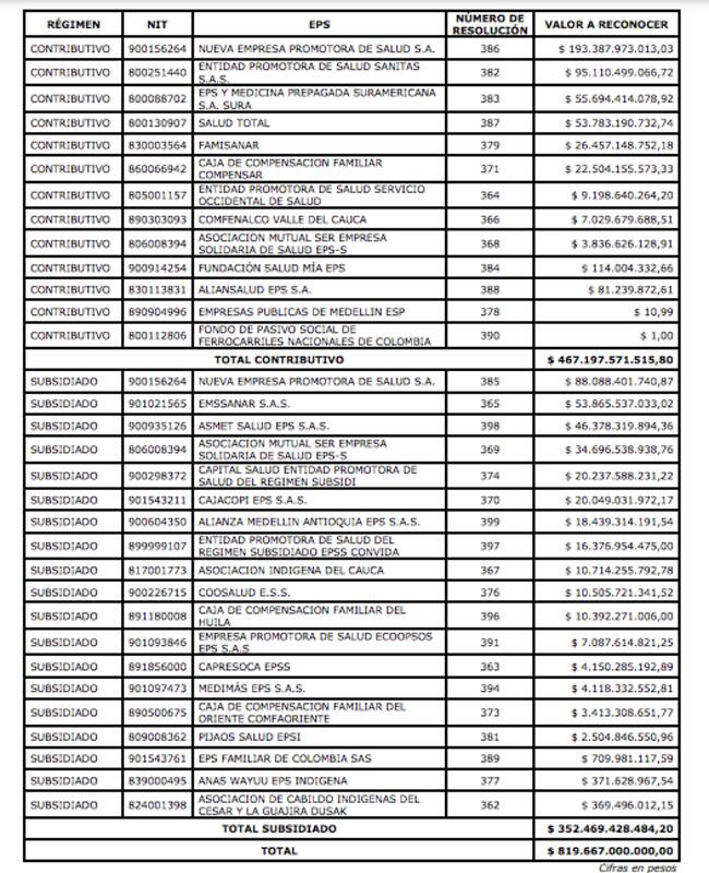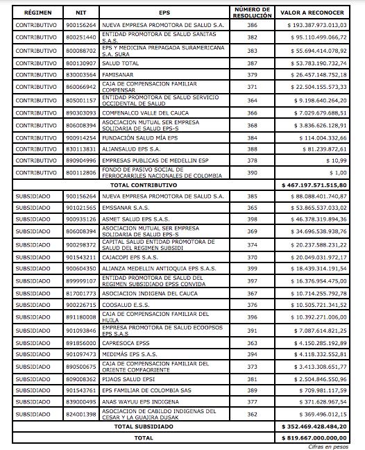 Y la Adres procederá a la distribución de los fondos a las EPS.