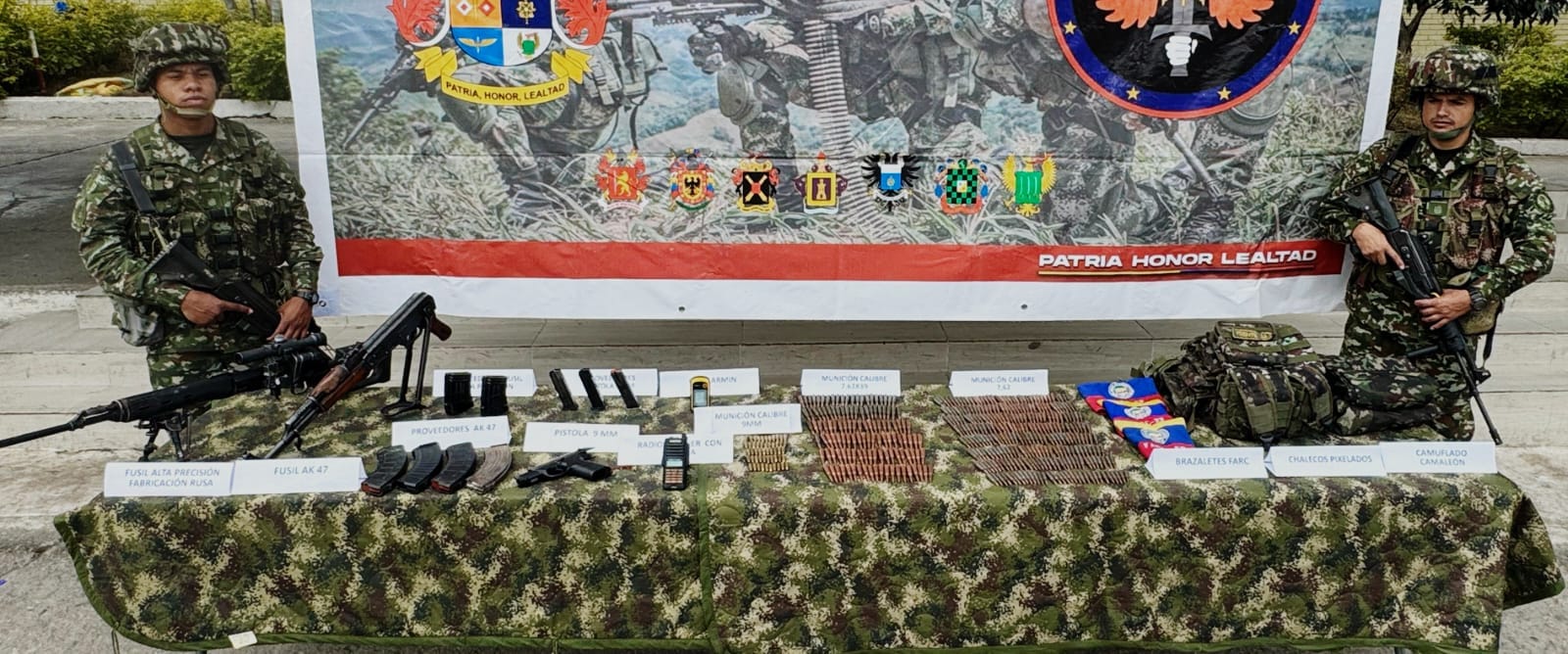 Incautaron dos fusiles, entre ellos uno de alta precisión, una pistola, más de 400 cartuchos, nueve proveedores, brazaletes alusivos al grupo armado y material de intendencia que fue puesto a disposición de las autoridades competentes.