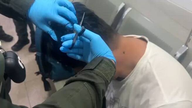 En un video entregado por las autoridades de Cartagena se puede evidenciar el momento en el que los uniformados cortan la peluca adaptada a la cabeza del delincuente y hallan el alcaloide.