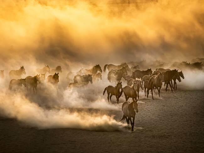 Animales causando una nube de polvo. Foto: Getty Images. / Ali CAN