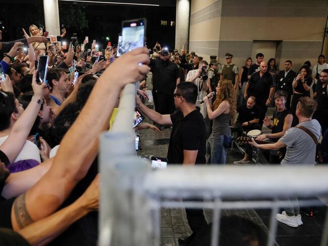Shakira cantó una canción para cientos de fans en la puerta del hotel antes de abandonar Chile