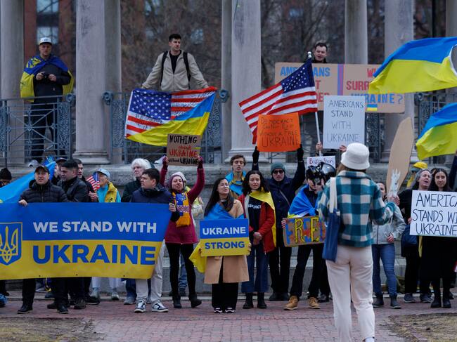 BOSTON (Estados Unidos), 01/03/2025.- Personas se reúnen en el Boston Common en apoyo a Ucrania y al presidente Volodímir Zelenski. / CJ GUNTHER (EFE)