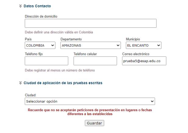 Diligenciar el formulario con los datos personales que allí le exigen. Debe señalar a qué ciudad desea aplicar.