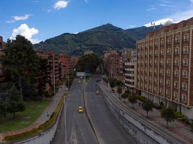 Vista aérea de una avenida principal casi vacía durante el día sin carro en Bogotá el 6 de febrero de 2025. AFP vía Getty Images / ALEJANDRO MARTINEZ