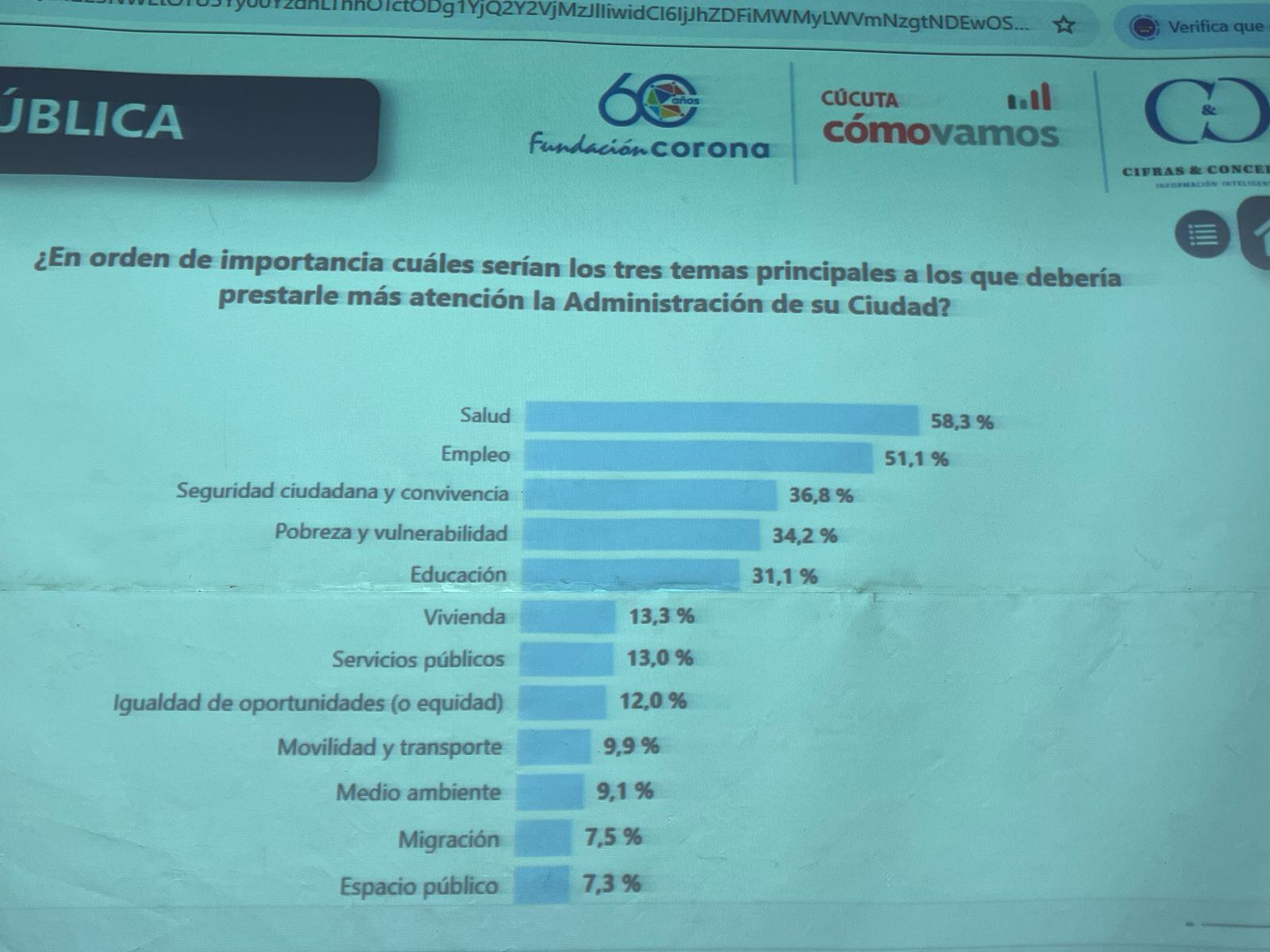 Cúcuta Cómo Vamos: Salud, empleo y seguridad, son los tres temas que más aqueja a los ciudadanos