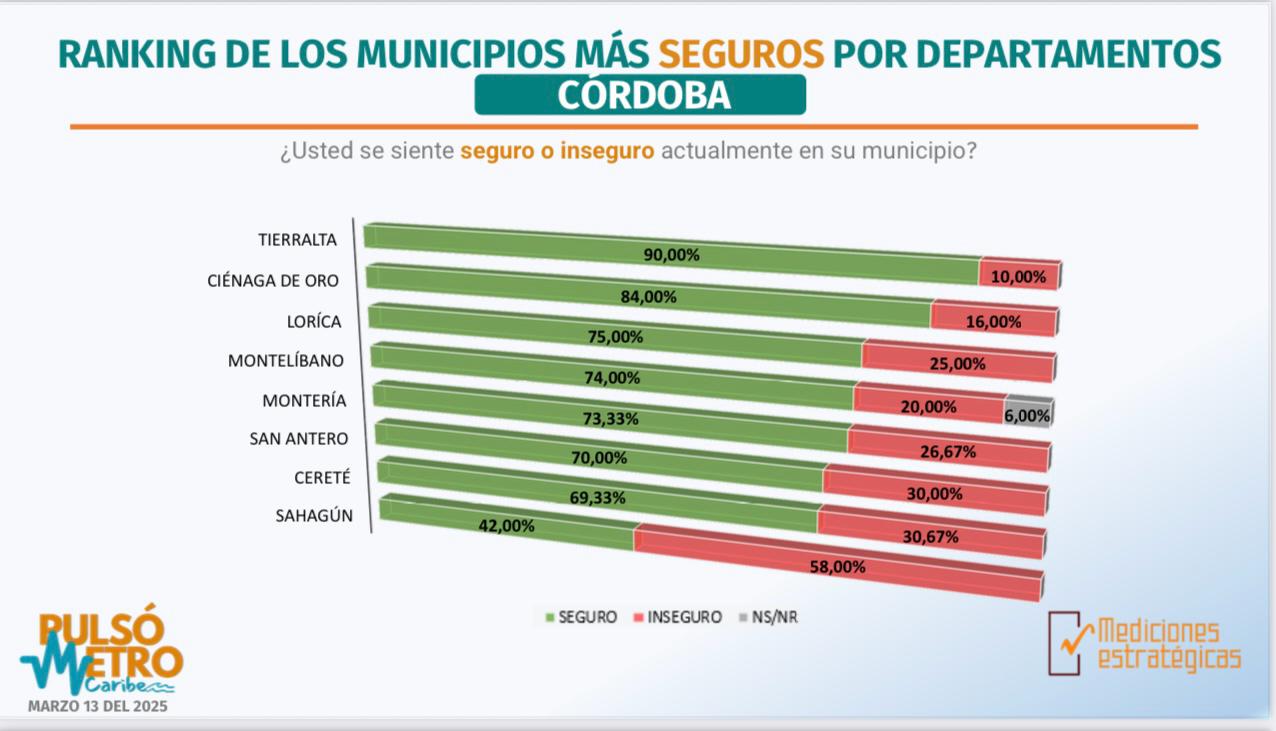 La medición también destacaría que Córdoba tiene a ocho de sus 30 municipios en el ranking de ciudades del Caribe más seguras.